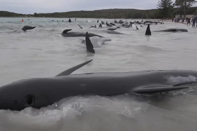 Nearly 100 pilot whales stranded themselves on a beach in Western Australia on Tuesday, July 25, with Australian officials announcing 51 had already died on Wednesday. The highly social long-finned mammals often maintain close relationships with their pods. The whales were spotted swimming near Cheynes Beach east of Albany early on Tuesday. By the afternoon, beached whales covered a stretch of the shoreline, despite earlier efforts to guide them back to sea.