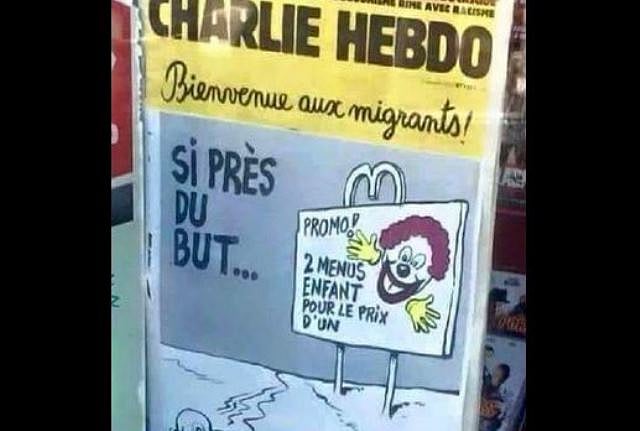 The cartoon attributed to the publication and circulating on social media features Aylan lying face down on a beach with the words "So close to his goal..." written above him, The Huffington Post reported.
