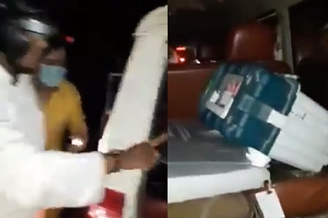 The polling party hailed a passing vehicle and boarded it along with the EVM -- ballot unit (BU), control unit (CU) and paper trail machine (VVPAT)-- and other things without checking the ownership of the vehicle.