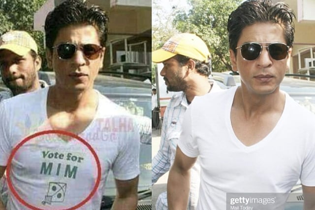 Several social media users have shared an image of Bollywood actor Shah Rukh Khan wearing a T-shirt with the text ‘Vote for MIM’ and a logo of a kite. MIM is the abbreviation for All India Majlis-e-Ittehadul Muslimeenn, a Hyderabad-based political party led by the Owaisi brothers – Asaduddin Owaisi and Akbaruddin Owaisi.