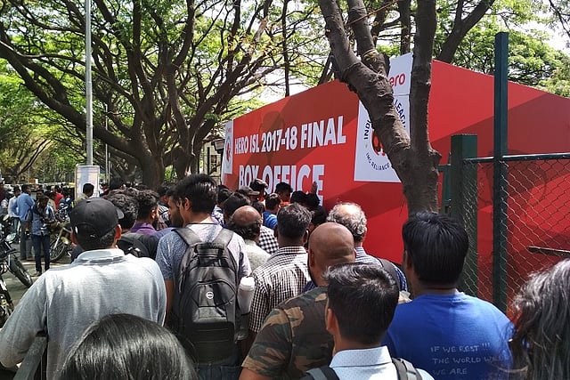 Football fans queued up at the Sree Kanteerava Stadium on Thursday for tickets for the Indian Super League (ISL) final to be held in the stadium on Saturday.