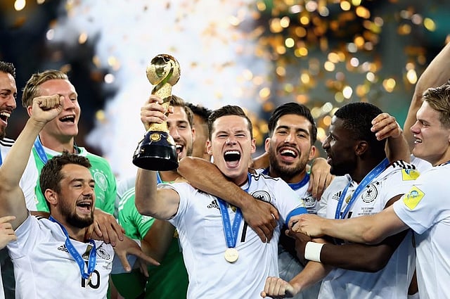 Borussia Monchengladbach forward Stindl tapped home against the run of play after a defensive blunder midway through the first half as world champions Germany added another major trophy to their collection, The Independent reported.