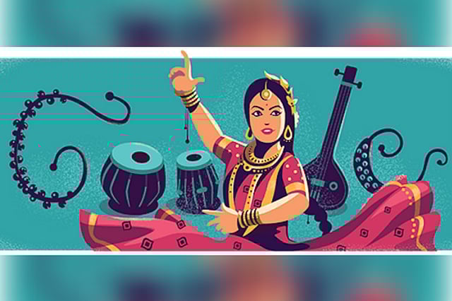 In the doodle, the Kathak legend is seen in a pink costume posing elegantly at the centre of the graphic, with the accompaniments of instruments -- ghungroo, tabla and sitar -- taking the place of the remaining alphabets in the word 'google'.