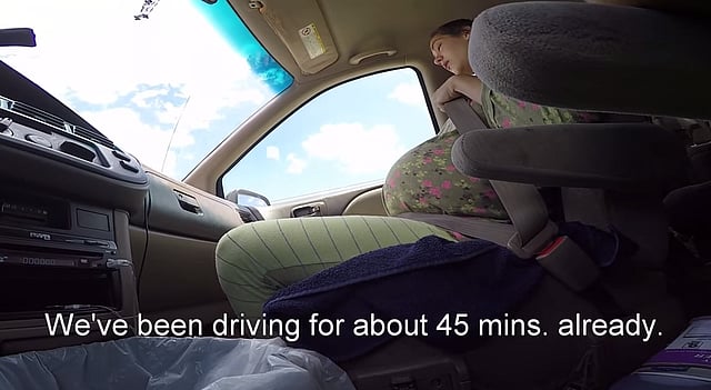 Husband films wife calmly delivering baby in car on way to hospital