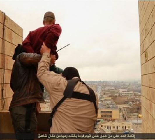 In images that the newspaper has published, ISIS militants can be seen throwing a man off the roof of a building as people below watch, another can be seen crucified.