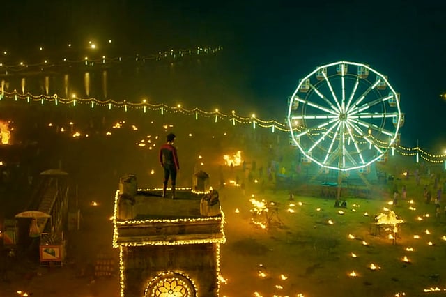 A video taken by a local, seemingly on a mobile phone, shows a makeshift, wooden bridge built by the crew of Minnal Murali. On the island, several shacks, statues, a giant wheel along with a few other game stalls can be seen in the video to give the impression of a village fair.
