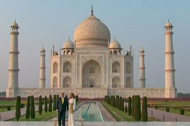 US President Donald Trump and First Lady Melania Trump on Monday evening visited the iconic Taj Mahal as they marvelled at the famed 17th century Mughal-era mausoleum built as a monument of love.