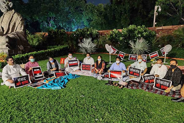Opposition parties hit out at the government over the suspension of the Rajya Sabha MPs, with the Congress terming it "undemocratic" and "one-sided." The suspended MPs have vowed to continue their protest and are even likely to demand that they be allowed to attend the session.