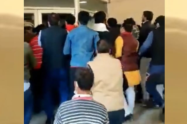 Chadha also tweeted a video clip showing broken doors, glass, pots, furniture and blood stains on the floor. The video shows a large number of people, many of them wearing BJP scarves, storming the office and breaking glasses as a few police personnel tried to control the crowd.
