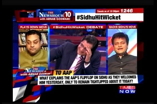 In a debate on Times Now with Arnab Goswami, BJP spokesperson Sambit Patra on Tuesday took the opportunity to quote Sidhu from earlier, when he had launched an attack on AAP chief Arvind Kejriwal.