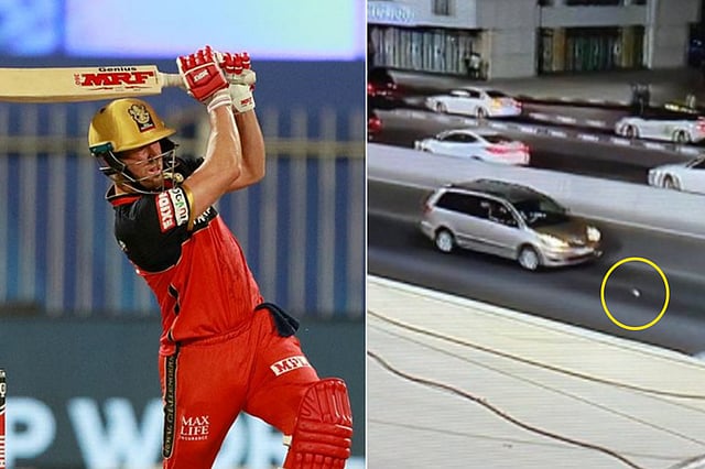 Stay safe Sharjah. If you are out on the streets when AB de Villiers is batting, then it would be a good idea to keep your eye out for cricket balls dropping from the sky. Royal Challengers Bangalore batsman AB de Villiers hit a match winning 73 against Kolkata Knight Riders on Monday night in the Indian Premier League (IPL). Described as a 'superhuman effort' by RCB captain Virat Kohli post-match, de Villiers's innings included two sixes which were sent out of the Sharjah Cricket Stadium and into the night traffic in the city.