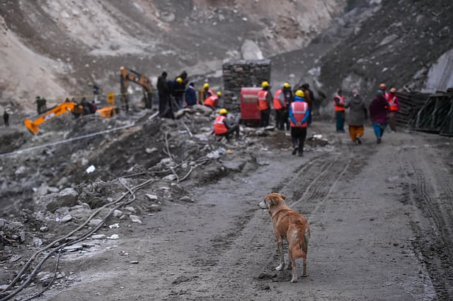 Since the morning of the disaster, when possibly a glacier broke off and triggered massive floods, the dog was at the Rishi Ganga power plant near Raini village, say rescuers. Villagers add that it had about three or four puppies, which could have been buried when the waters came rushing in on that fateful February 7 morning.
