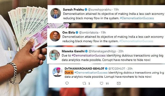 Women and Child Development Minister Maneka Gandhi, Railway Minister Suresh Prabhu, Lok Sabha MP Om Birla were among the ones who tweeted, “Demonetisation attained its objective of making India a less cash economy reducing black money flow in the system. #DemonetisationSuccess”