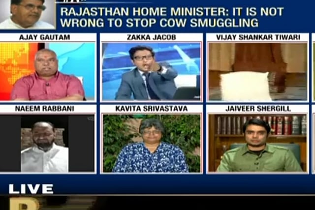 During the primetime debate being hosted by Zakka Jacob, the panel, which included members of Hindu right-wing organizations like VHP and ‘Hum Hindu’, political parties BJP and Congress, the issue of state’s high-handedness was being discussed. Referring to an incident of the police shutting down a business for allegedly selling beef, while the business-owner maintained he was only selling chicken, Jacob asked why a food inspector was not sent first to check. “Is this a banana republic?” he fumed, repeatedly.