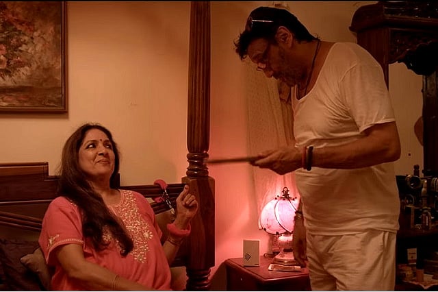 Starring Jackie Shroff and Neena Gupta as a middle-aged couple, the film opens with shots of a bed shaking rhythmically and sounds of a man moaning. But it's not what you think it is: It's just Neena scratching Jackie's back with a churning stick to ease a stubborn itch.