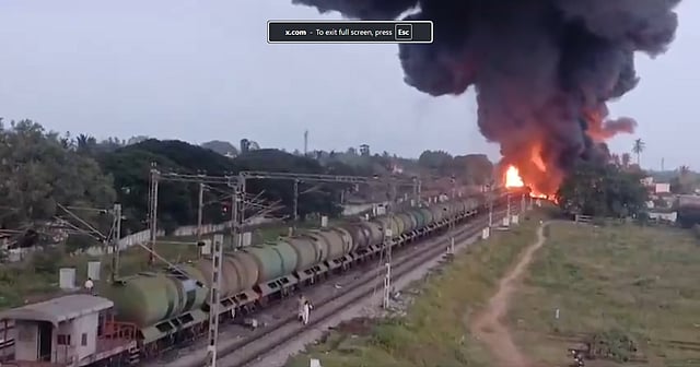 The fire, which broke out around 5.30 am, engulfed four wagons of the train carrying 27,000 litres of diesel from the Indian Oil Corporation’s Manali refinery to Jolarpet. The blaze led to panic in the area, prompting the Tiruvallur district administration to evacuate nearby residents as a precaution. Thick smoke from the burning fuel further complicated rescue and containment efforts.