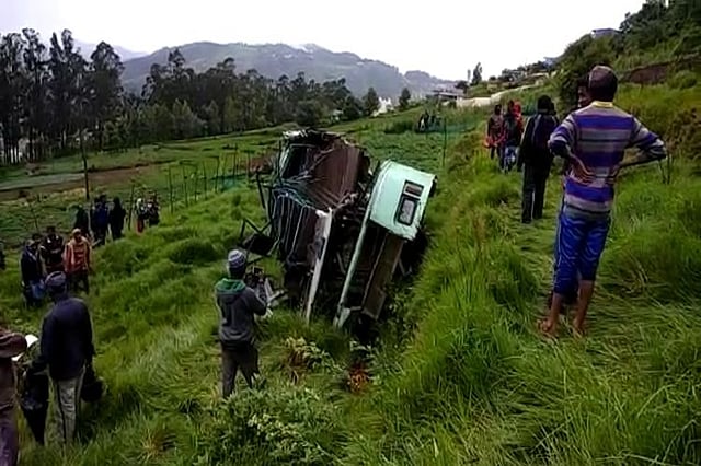 "The bus had been going from Ooty to Coimbatore. Around 12:30 pm on Thursday, we got information that the bus had toppled. According to one of the survivors, the bus had been going only at 40 km/hour but the driver had attempted to overtake another vehicle on a plane road (not a curve or hairpin bend). While attempting to do this he swerved to the right and the bus slipped from the road and fell into the valley," said Coonoor SP Shanmugapriya.
