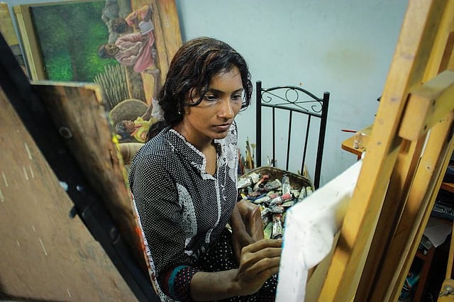 “One day I received a call from someone asking the “rate” for the woman in the painting I had done. These are just some of the abuses I go through on a regular basis for wanting to practise my art,” she laments. Ramya also shares with us that to protect her model’s identity she always paints them with a different face. “My models should feel safe and I make this little alteration to my works so that their privacy is protected.”