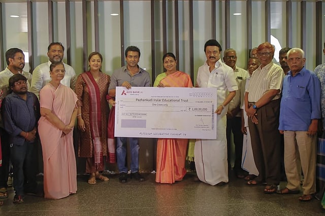 Actor Suriya, whose film Jai Bhim is releasing on Amazon on November 2, donated Rs 1 crore to the Tamil Nadu government for the education and welfare of Irular students. The actor handed over the cheque to Tamil Chief Minister MK Stalin on Monday, November 1. The Irulas are classified as a particularly vulnerable tribal group (PVTG). The actor donated the amount to the Pazhankudi Irular Educational Trust, which looks after the education and welfare of the Irular students.