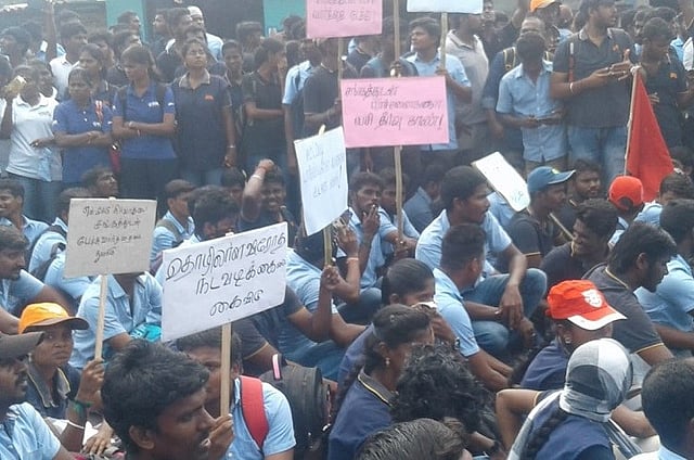 The Kanchipuram police, on Tuesday, detained around 2,500 workers who took out a rally towards the office of the Kanchipuram District Collector. The workers from three companies -- Yamaha India, Royal Enfield and Myoung Shin India Automotive (MSI) -- have been on a sit-down strike since September, pressing for various demands to the management of their respective companies.