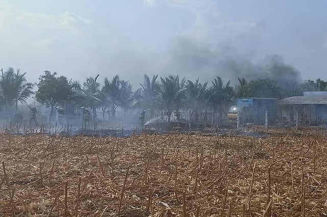 Three fire engines were rushed to the spot to douse the fire. The fire is reportedly under control except in one room, where fireworks are still bursting.