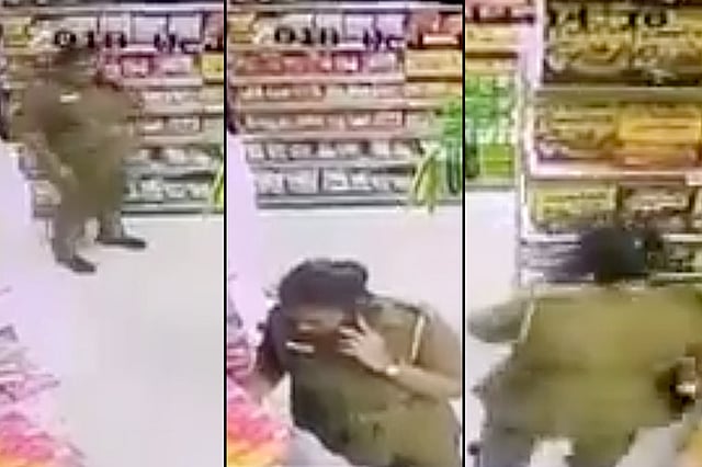 The footage then shows a group of men entering the shop and slapping a man, allegedly an employee of the store. The men are also seen assaulting another man who came to the rescue of the beaten employee.