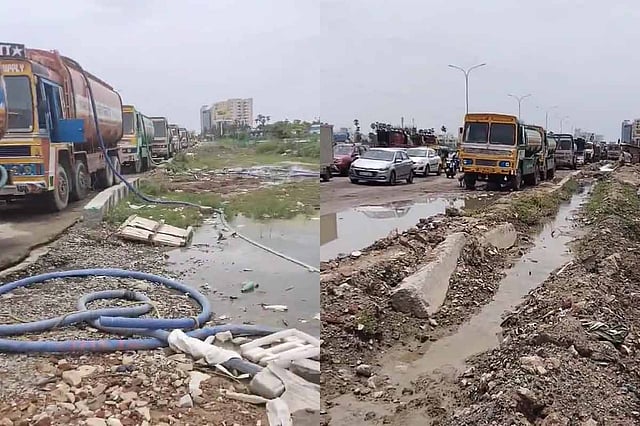 A video of motorists arguing with the drivers of the tankers to clear the road on Sunday has surfaced on Twitter. David Manohar, an activist from Arapoor Iyakkam who uploaded the video alleged, “Until a few months ago, only 6-7 lorries would come. Now it's 50-60 lorries tapping water illegally.”