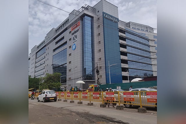 The next 200 metres it is covered in large craters, protruding manholes, sludge, open sewers and stagnant water. With over 50 companies occupying just the one road which begins at Olympia Tech Park, it is a daily struggle for commuters to make their way to work.
