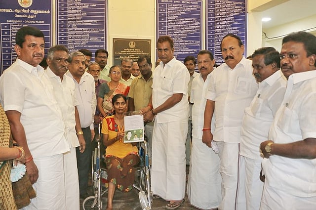 Anuradha's accident had been reported in November, just two months after a techie, Subashree died as a banner fell on her while she was riding her bike in Chennai. Anuradha too allegedly lost control of her vehicle after a flag pole struck her on her head. She then came under a lorry, which ran over one of her legs. State local administration Minister SP Velumani met Rajeswari at the Coimbatore district collectorate on Friday and gave her the appointment order for the position of village assistant in Sanganur.