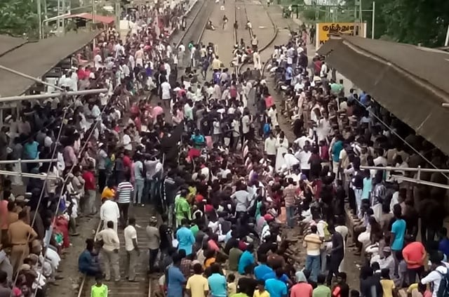 A week after Cyclone Ockhi wreaked havoc along the southern coast of Tamil Nadu, fishermen from eight villages in Kanyakumari are holding a rail roko agitation at the Kulithurai railway station. Over 6000 protesters are refusing to move from the tracks of the station, till the government promises to fulfill their demands regarding the missing fishermen.
