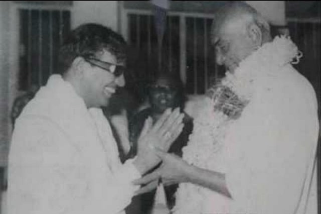 Recalling the warm relationship that the two leaders – who belonged to different political camps – shared, he says, "Even the last time when I met Karunanidhiji, about a year ago, he laughingly told me, 'Your great grandfather lived till 94 like Periyar, both of them were stalwarts of Tamil Nadu. I'm 94 now and I'll hit a century.' That was the last thing he told me… There is even a famous picture of Rajaji blessing Karunanidhiji. In fact in 1971, the government of India had bestowed all the freedom fighters with a tamra patra. And Kalaignar himself went to Rajaji's house and gave him the tamra patra which was given to freedom fighters."