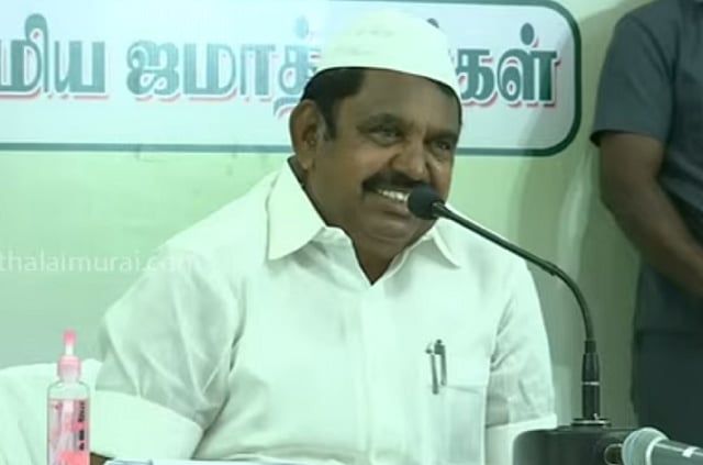 Tamil Nadu Chief Minister Edappadi Palaniswami attempted to ease tensions amidst minority communities in Tamil Nadu, over the AIADMK's alliance with the BJP on Thursday. Speaking to a gathering of the Muslim community members in Tiruppur district, the Chief Minister wore a skull cap as he addressed his audience.