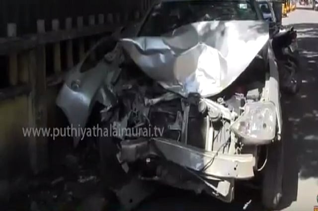 Charles Anthony, a taxi driver, was driving on ECR when he hit a woman, Vasantha Devi, who was walking on the road. She died on the spot. The car also went out of control and hit a share auto in which seven people were traveling.
