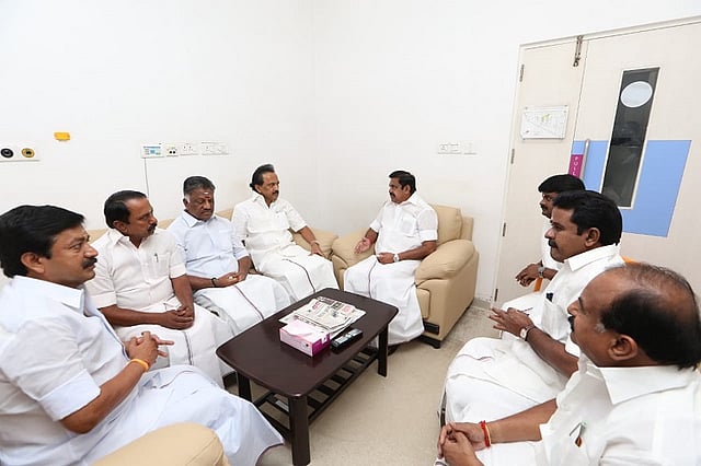 Tamil Nadu Chief Minister Edappadi K Palaniswami and Deputy Chief Minister O Panneerselvam met ailing DMK supremo M Karunanidhi at Kauvery Hospital on Monday morning. EPS and OPS met Karunanidhi, and were later seen having a chat with DMK working president M K Stalin.