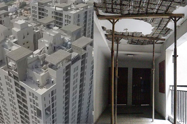 Hundreds of residents in the Jains Westminster apartments in Chennai’s Saligramam have been living in fear after the ceilings of the building started to collapse. On Monday, July 31, the false ceiling of a corridor on the ground floor collapsed within seconds along with concrete chunks and iron rods that were installed in the ceiling. The residents filed a complaint with the police against the builders – Jain Housing and Constructions for structural defects. Since July 31, residents claim that ceilings collapsing have become everyday occurrences but the builder allegedly has not responded to these concerns. The complex that was completed in 2015 houses three blocks with a total of 640 units. Out of this, 130 units are vacant and unsold.