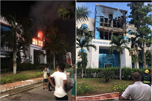 The hospital staff immediately alerted the police and fire control station and the fire was brought under control after two hours. According to the police, the glass windows had to be demolished to bring the fire under control.