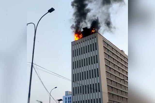 A fire broke out at Chennai’s LIC building on Anna Salai after a digital board short-circuited on Sunday, April 2. The fire department’s spot officer Vadivelu confirmed to TNM that the fire has been put out and there have been no casualties. “The digital board bearing the LIC logo that is mounted on the building’s roof caught fire after an electrical failure. The fire has been put out and everything is under control now,” he said. The control room of the fire department also told TNM that the fire started around 6pm in the evening and was quickly put out.