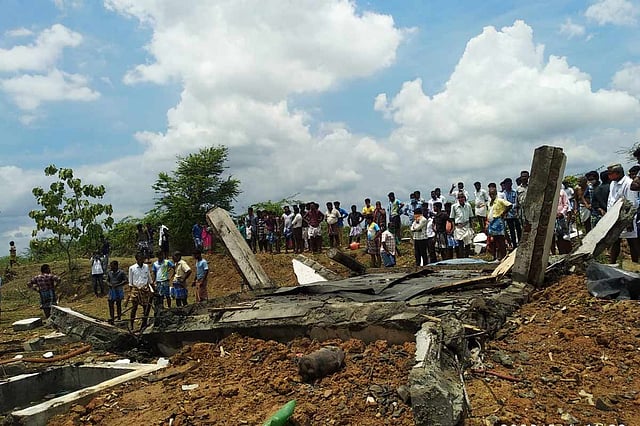 Visuals from the site show a temporary shelter collapsed on the ground. Relatives of the deceased have gathered at the spot. Smoke from the explosion is seen still emanating from the shelter which was destroyed, as local residents examine the debris.