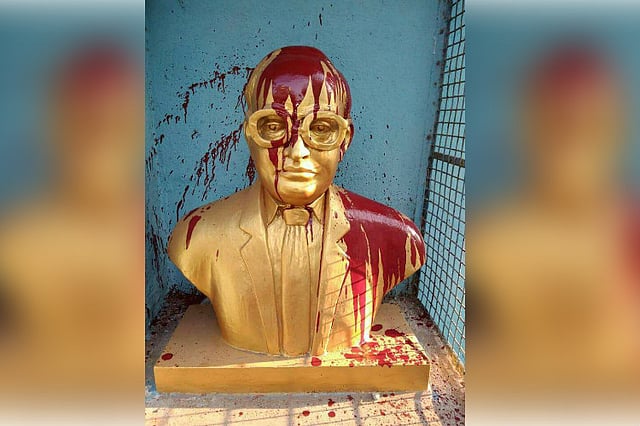 After a Periyar statue was vandalized on Tuesday evening in Tirupattur, Vellore, miscreants desecrated a statue of BR Ambedkar in Tiruvottiyur, Chennai, with red paint on Thursday.