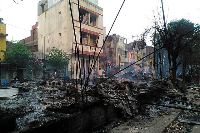 Though the rest of Chennai had largely come back to normal, angry voices filled the streets of Nadukuppam on Monday evening. Hundreds of people, mostly fisherfolk, were standing on the roads, staring at the charred remains of their fish market.
