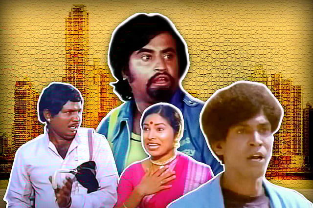 With long hair reaching to his shoulders, a strip of ash and red bindi dominating his forehead, Goundamani plays a Hindu priest who specialises in exorcism. Along with his assistant Senthil (in an afro) and the film’s lead pair - Ramarajan and Gouthami - he flies to Singapore from a village in Theni. To do what? To exorcise, of course. Goundamani and Senthil explore a bit of Singapore on their day-out in this 1990 film directed by Gangai Amaran. From playing the udukai in front of an unsuspecting Singaporean enjoying music on his headphones, to getting beaten up by Buddhist monks, to a ‘Suppandi’ like comedy involving a vending machine and a glass bottle, the two have a well spaced out comedy track in this film and that makes it an enjoyable watch.