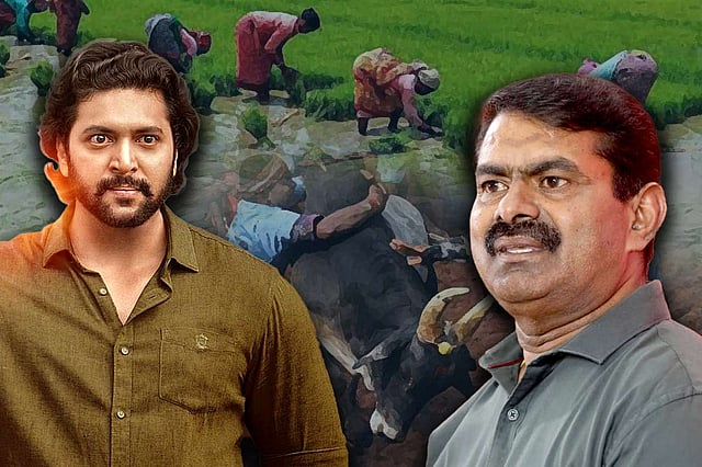 However, this theme, which saw a gradual decline over the years, resurfaced post the Jallikattu protests of 2017. With the ‘save farmers’ trope coming back to mainstream discussion, movies once again began connecting Tamil identity to agriculture. Any threat to agriculture was seen as a threat to Tamil identity itself, as popularised by movies, other pop culture artefacts, and politicians like Seeman.