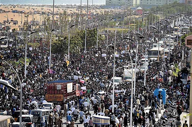 In an attempt to discredit the Marina protests and justify police action against the protesters, the government of TN has put forward several theories, one of them being that anti-national elements had entered the protests. As proof, we were shown an image of a man on a bike with a poster of Osama bin Laden. TN CM O Pannerselvam even mentioned this on the floor of the house.