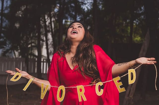 Going against the trend of elaborate engagement and wedding photoshoots, Tamil actor Shalini posted pictures of herself celebrating her recent divorce. Shalini is well-known to viewers of the Tamil serial Mullum Malarum and the reality show Super Mom. The photoshoot of the actor dressed in a deep red outfit is done with both humour and a powerful message. In the photos, Shalini can be variously seen holding a banner declaring herself divorced, tearing up her wedding picture, and holding a poster that says “I’ve got 99 problems, but a husband ain’t one.”