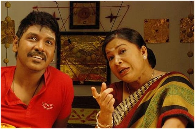 Although Kovai Sarala played Raghava Lawrence’s mother in Muni, its prequel, it was in Kanchana that she perfected her cartoonish caricature. Together with Devadarshini and Sriman, Kovai Sarala whips up a roar fest, made even funnier with her dialogue delivery.