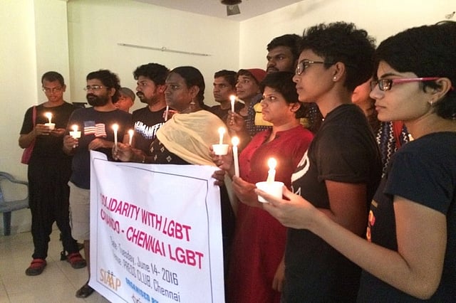 LGBT activists in Chennai came together on Tuesday to show solidarity with the victims of the Orlando shooting. A candlelight vigil was held at Chennai Press Club in remembrance of the victims.