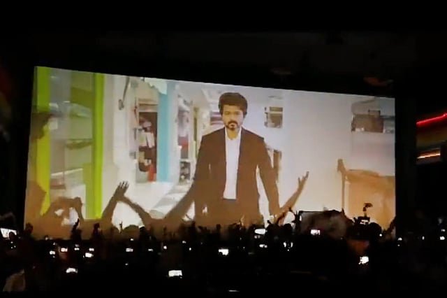 Harish Kumar, who was present at the screening on April 2, points out that along with the trailer of Beast, two singles from the movie — ‘Arabic Kuthu’ and ‘Jolly O Gymkhaana’ — were also screened as a part of the show. He adds that other popular songs from Vijay’s career such as ‘Vaada Vaada Thozha’ from the 2005 Tamil film Sivakaasi, ‘Pokiri Pongal’ from the 2007 action-drama Pokkiri, ‘Sonna Puriyadhu’ from Velayudham, and mashups of other Vijay songs were played on Saturday.