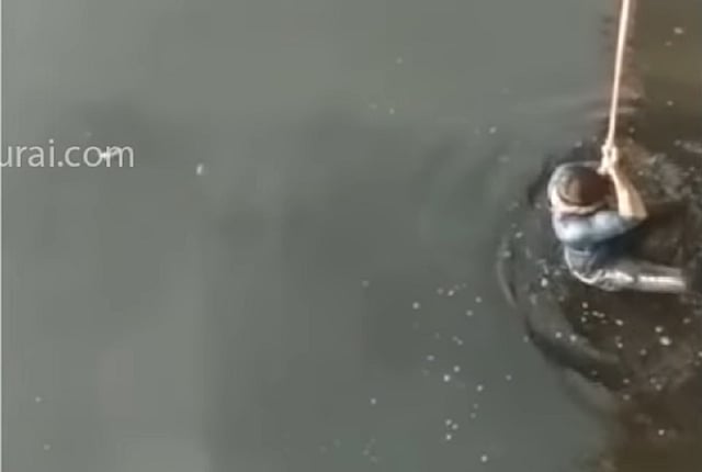 Police officials at the check post near the War Memorial responded to the situation. Sub-inspector Kumar and constable Chinnasamy went to the spot to rescue Karthik. They are attached to the Anna Square Police Station. The officials rescued Karthik by sending down a rope which he tied around his waist, and then pulled him up.