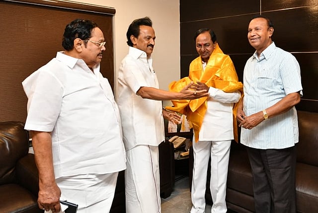 When Telangana Chief Minister and Telangana Rashtra Samiti leader (TRS) K Chandrasekhar Rao announced that he would be meeting Dravida Munnetra Kazhagam (DMK) President MK Stalin in Chennai, the speculation was that the TRS chief would make a pitch for the DMK to join the Federal Front, or a coalition of regional parties. However, top sources in both DMK and TRS have confirmed to TNM that the two leaders spoke about why a Narendra Modi-led BJP government cannot come to power again and discussed the ways in which such a political situation could be dealt with.