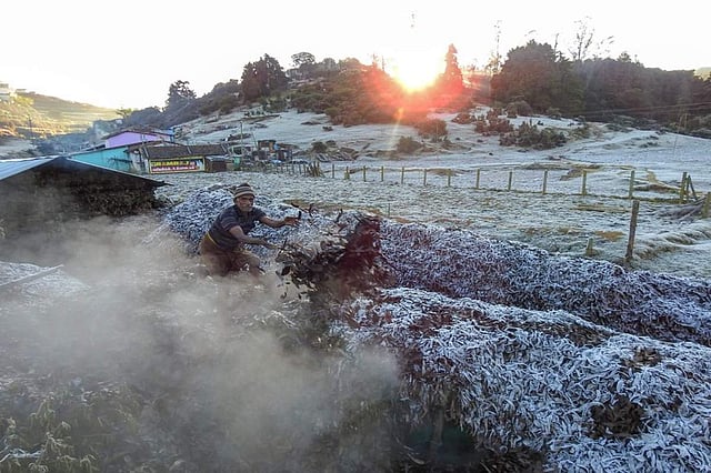 While the winter season in the mountain area typically lasts till February, with dew appearing around November and gradually turning to frost, this year's winter was delayed due to heavy rainfall in the region. Though there had been some warmth during the daytime last week, it has started to get extremely cold now, especially in the evenings and at night, residents say. The frost and cold is expected to last till the end of the month.